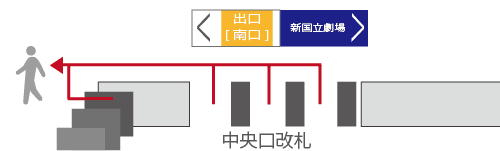 ②中央口改札を出ると北口と南口がありますので、左手の「南口」に向かいます。