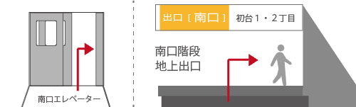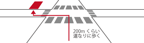③南口の階段を登るかエレベータで地上に出たら、右手方向に進みます。